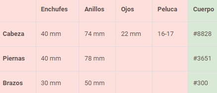 Ojos no incluidos: 22mm
